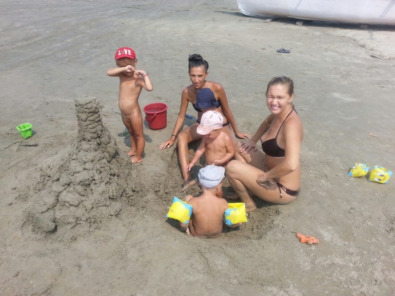 Пока девчонки гуляют во дворе и терасе, я быстро мою тарелки, одеваюсь в купальник, собираю аляжные вещи. Наш папа тем временем уходит на работу. мы выходим на море. Обычно за нами заходят наши друзья. Карина и ее дочки Милана и Ариша. Они на 4 месяца каждая старше наших девчонок.