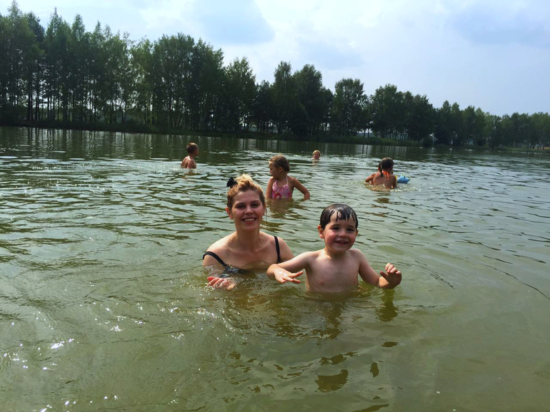 Леня первый раз купался, эмоциональный взрыв! Из воды не вытащить! Пришлось даже уехать с озера, а то Леня приобрел фиолетовый оттенок, а посидеть погреться не хотел. Прям из воды достала его и запихнула в машину. Плавать не умеет, захлебывается, а все равно лезет в глубину -надо учить плавать! Купались первый раз за год.