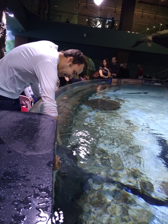 Понравилось наличие интерактивных аквариумов, куда можно опускать руки. Мой муж потрогал акулу и ската))) радости как у детей