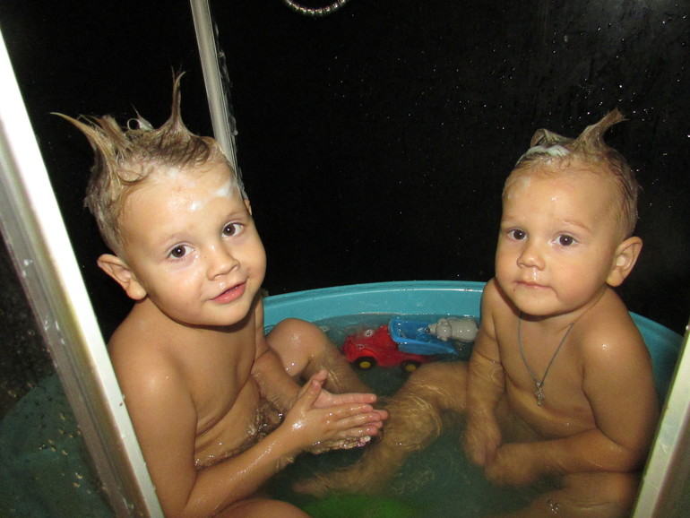 ну да,младшему год недавно исполнился,старшему 2,2.ревности прям откровенной нет вроде,но пока папа вечером играет с младшим,старший как сиротка пригорюнивается,так и говорит:"пригорюнилась я":))папины хвосты:)весь день старший придумывает чтоб поделать,все что можно было-уже изучил,теперь запретные плоды пошли в ход:режем бумагу ножницами,колбасу ножом,пока малой спит,таскаем мультиварку и чайник(без воды слава богу)))а малой смотрит и везде за ним лезет:)шторы вместе обдирают,в унитаз норовят залезть и кошачью еду))группировка у них получается почти.я пью то валериану,то новопассит,не всегда помогает:(