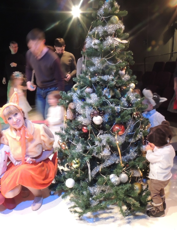 А сегодня были на новогоднем представлении в театре. В театре мы были в первый раз. Собирались вместе с мужем, но ему пришлось уехать по работе на пару дней(( Пришлось одной с детьми идти, еще и коляска Борина перед выходом сломалась((( не фиксируется в разложенном виде((( Пошли без коляски, хорошо театр совсем недалеко) Борю на ручки, Федю за ручку - добежали)) Представление отсидели очень хорошо, оба с интересом смотрели. Потом был хоровод и Дед Мороз, конфет правда опять не было))) Но нам всем понравилось))) Теперь не буду бояться ходить с детьми в театр)))