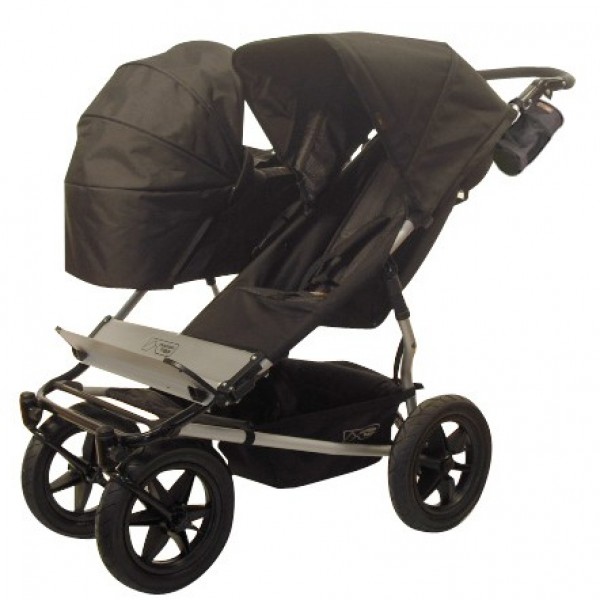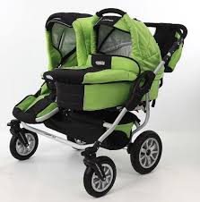 попробуйте посмотреть модель маунтин багги дуэт,она имеет узкое шасси(как у одноместного трансформера),при этом сидения расположены бок о бок, и имеет несколько конфигураций,можно купить прогулочный вариант и люльку отдельно.