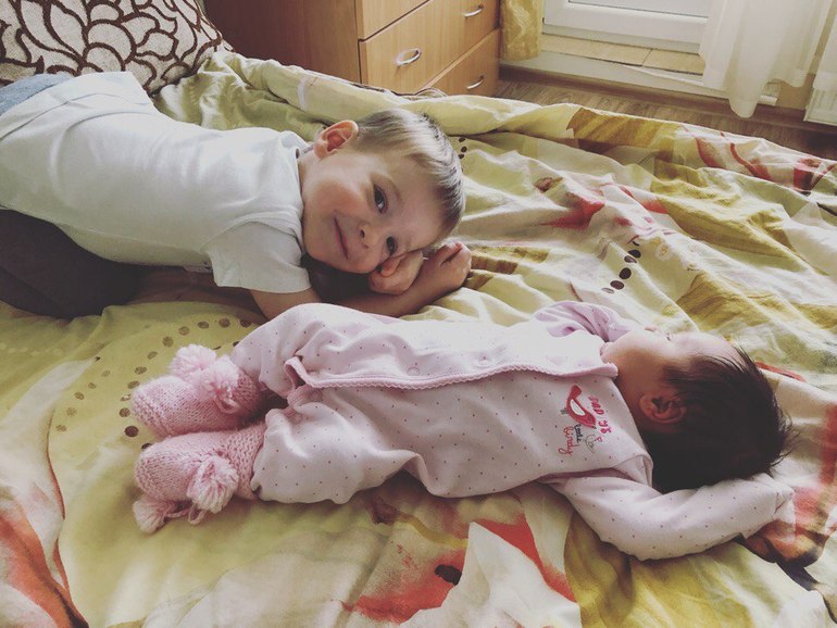 Илюша спокойно вполне принял сестрёнку. Не трогает ее, видно что осторожничает. Умиляется её крохотным ручкам, ножкам, пальчикам) Все это очень трогательно) Спим в одной комнате: я с малышкой сплю, сынок в своей кроватке. Муж, к сожалению, в зале на диване (очень не нравится мне этот момент, но пока по-другому никак). 😐