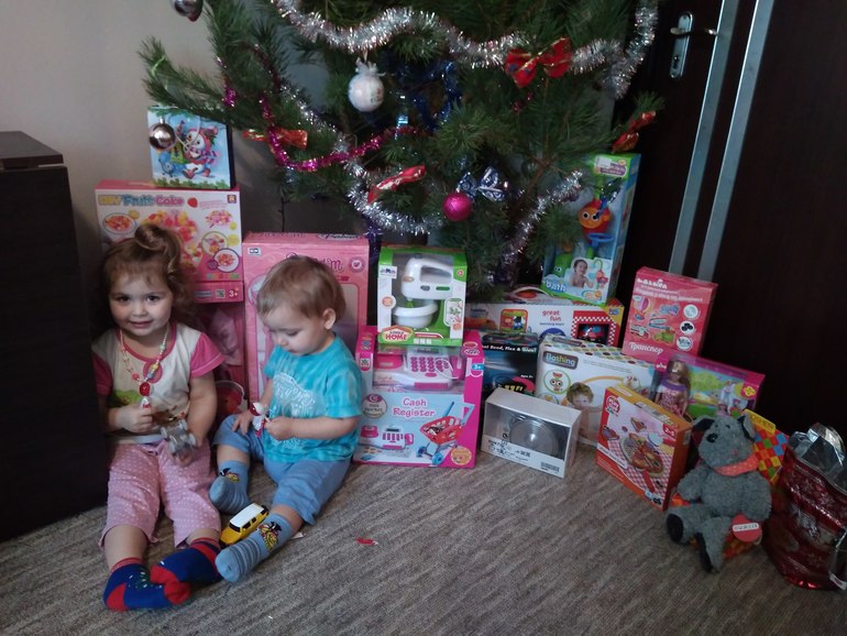 У нас Дед Мороз принес по подарку, потом под елочку положил по подарочку и еще по сладкому. Потом на Рождество подарим по подарочку, И хватит))) И так игрушки раздаю, некуда складывать