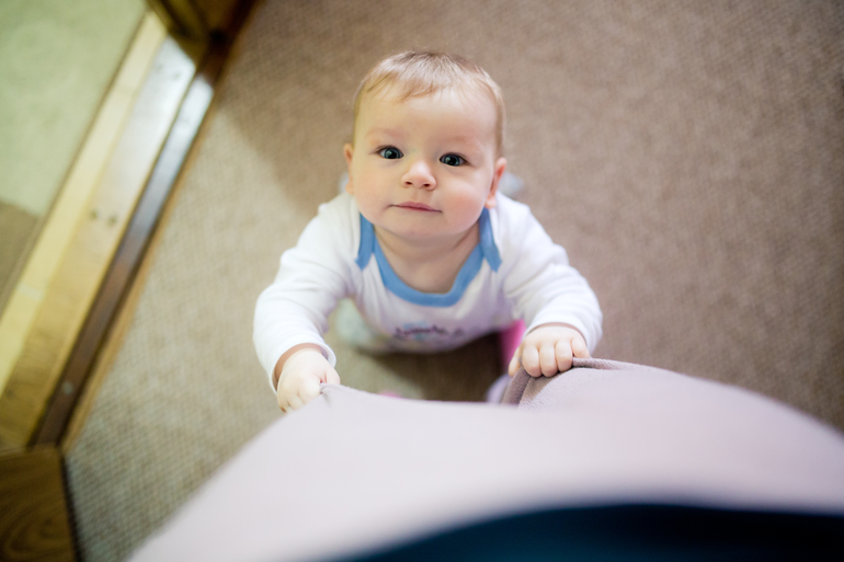 Можно, конечно, младшего банально посадить в стульчик. Но это минут на 5, не больше, ему же там скучно, все равно ноет, а при "свободе" занятий интересных больше - ползи куда хочешь. Поэтому выбор пал на "стоя, зато в тишине" :-)