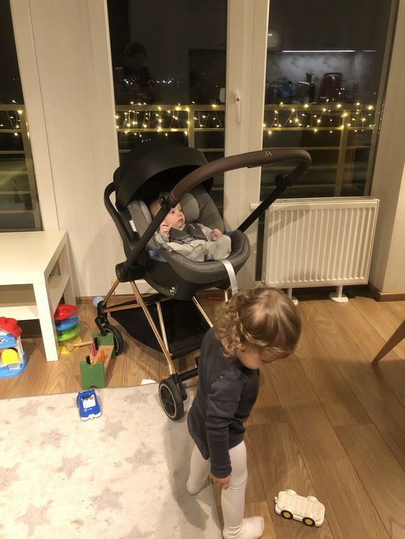 А я просто баунсер за собой таскаю с мелкой. Коляска прикольно конечно, но колёса мыть после каждой прогулки мне лень было бы...))