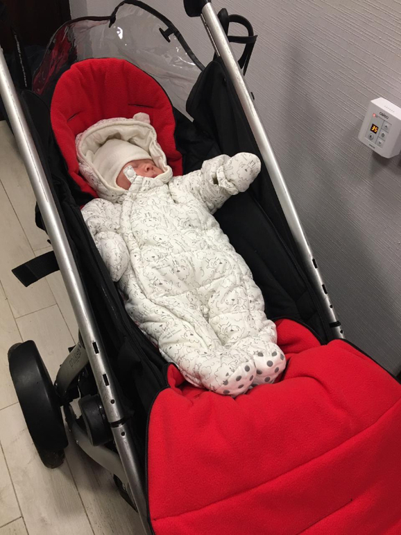 Флисовыц конверт-футмуфф извлеките снизу, он там не нужен. Если вам кажется, что холодно, то сверху укройте ребенка пледом и закройте переноску на молнии.