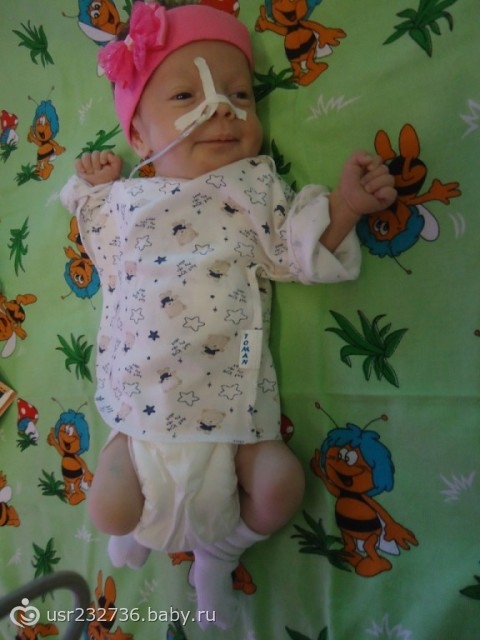 Потом через 10 суток ее перевели в другую больницу, мы были вместе в палате, начали выбивать квоту на операцию в Бакулевку, вроде все было более менее, она росла, хорошо набирала в весе, в 2 месяца мы весили 3700 и 55 см...