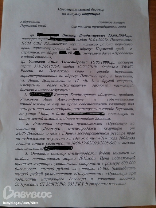 Жилищное (оформление, прописка, приватизация)Девочки,срочно нужна ваша помощь! Ситуация такая : Мы продаем квартиру,на нас вышло агентство,якобы девушка хочет купить квартиру. Приехали,посмотрели,квартира понравилась. Составили предварительный договор купли -продажи,девушка внесла задаток 15т.р. Все это было еще в январе,в предварительном договоре написали,что основной договор напишем не позднее 15 марта. А недели 2 назад,в той квартире потекла крыша. И сейчас девушка (со слов риэлтора) требует деньги назад,НО при этом договор не расторгает,а каким то не понятным образом предлагает решить нам эту проблему (течь крыши). Мы задаток отдавать отказываемся. Что делать в данной ситуации?