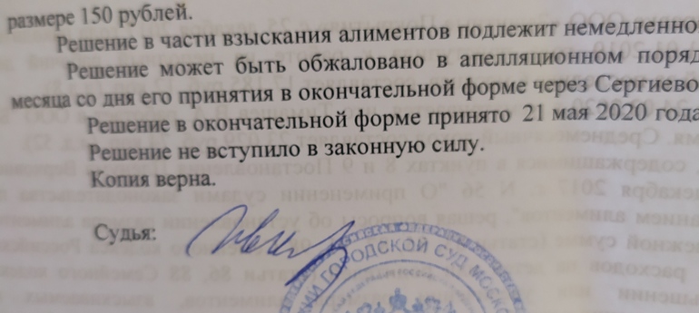 Пришло решение по алиментам на себя, удовлетворили частично.