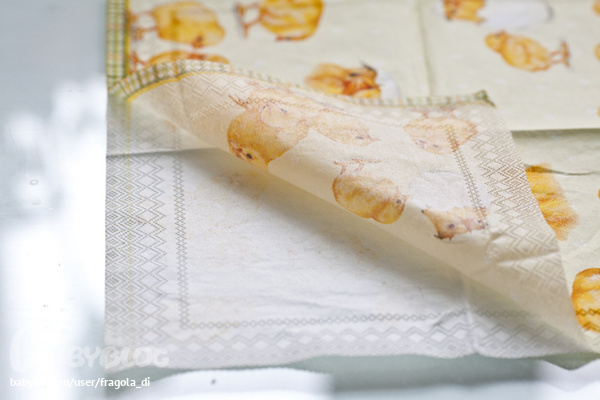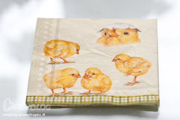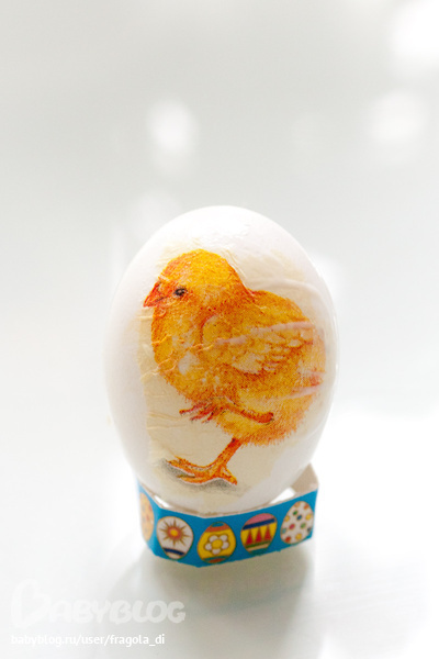 1. фон рисунка на салфетке очень желательно подобрать в цвет краски для яиц.. а картинка сама должна быть яркой.. не параноидально.. желтый-желтый, красный - красный.. таким образом будет казаться, что на яйцах роспись, а не наклейка..