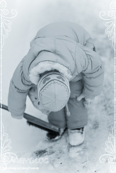 Утро выдалось хорошее! Снежное и спокойное без ветра. Машину нашу запорошило. И папа с помощью старших очищал нашего коня. Длилось это минут 15 я успела пофотографировать малышей.