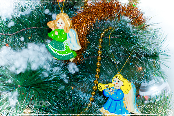 Вечером у нас на елке появились ангелочки (купли в Храме). Мы читали книгу "Азбука. Родные истоки" на букву А -про Ангелов. И читали молитву своему Ангелу.