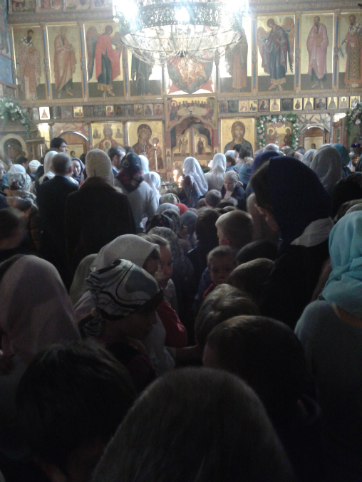Две очереди к причастию - слева девочки, справа мальчики :)
