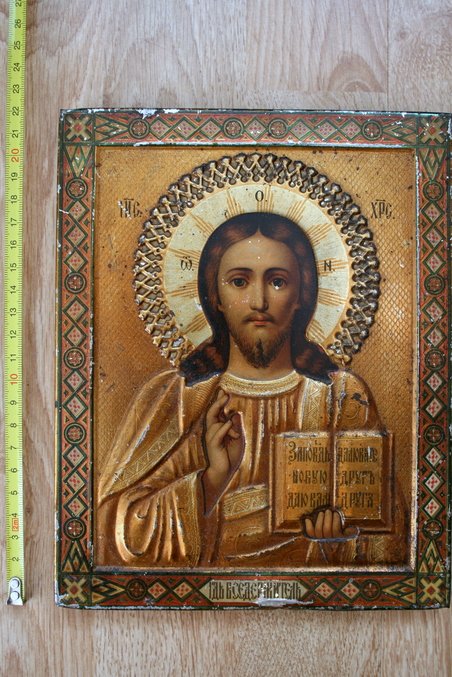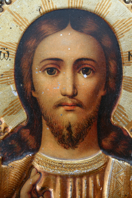 2. Господь Вседержитель. Примерно 22х17 см. Печать по маталлу. 1895 год. Не реставрировалась. Сколы и вмятины - много.