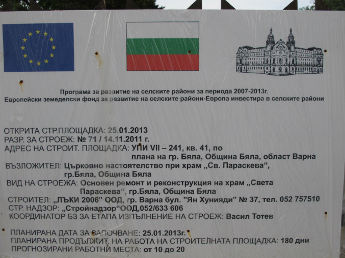 О церкви Святой Параскевы я читала в интернете: "Церковь Св. Параскевы в Бяла будет отремонтирована. Храм является старейшим в муниципалитете. Он был построен в 1841 году жителями Бялы. Согласно действовавшим в то время законам Османской империи, храм православных христиан не мог быть выше, чем высота всадника с феской и не мог отличаться внешней архитектурой от других зданий в деревне."