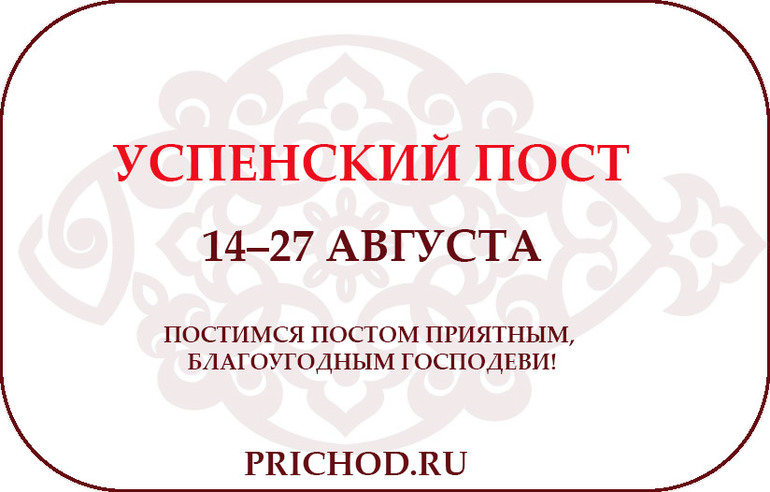 Случайно начала поститься по зову души, посмотрела в православный календарь и удивилась, что как раз попала в пост) Хотела попоститься несколько дней, но теперь постараюсь до Успения, до 28 августа.)