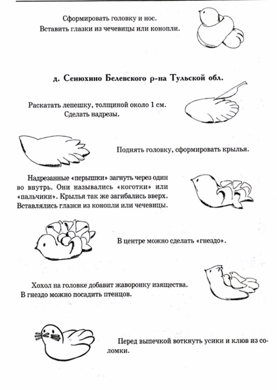 Несколько способов изготовления жаворонков из теста: