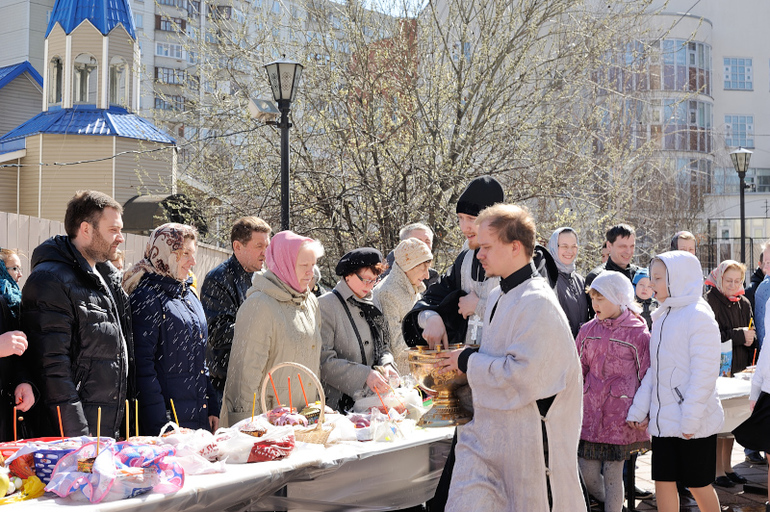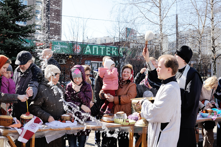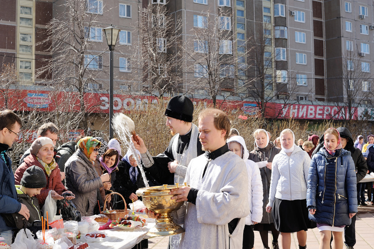 Освящение куличей в храме "Утоли моя Печали" в Москве.