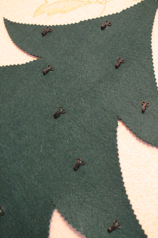 Елка вырезана из шевронной ткани, к ней пришито 24 крючка т.к мы будем вести свой календарь с 14 декабря по 6 января.