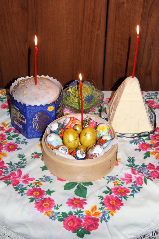 Последние недели поста выдались у нас нелегкими. Сначала болели дети по очереди. Благо, что недолго и легко. А потом свалилась я основательно. Даже не помню, когда я так последний раз болела. Окончательно здоровой не чувствую себя до сих пор. Сашкин выпускной свалился, пришлось активно его готовить, собирая в кучу сопливые мысли. О службах на страстной седмице мне опять оставалось только мечтать. Благо, что хоть сегодня в храме удалось побывать и даже причаститься. Сашка моя умничка большая. Мы с ней постились. Это ее первый настоящий пост. Выдержала все с легкостью, не страдала ни без мяса, ни без молочки и всего остального. Сегодня с таким аппетитом слопали с ней по пасхальному яйцу ))) Ну, и пасху, конечно, нашу любимую валаамскую сделала. Нереально вкусно. Первый раз не пекла куличи. Сказала мужу, если хочет, то пусть покупает. Я не любитель булки пусть и праздничной. Тимоша хоть и не постился в силу возраста, но всю праздничную еду оценил. Особенно ему понравилось яйца колотить. Досталось всему: холодильнику, пылесосу, шкафу, стулу, столу, кошке... И пасху с удовольствием захомячил у меня с тарелки. А вот кулич выплюнул )) Похоже, что только Вова и любит сию выпечку.