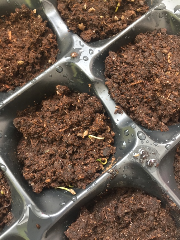 дома посадила в маленькие баночки, накрыла пленкой. как проклюнулись, открыла, доростила до 6 листика, буду рассаживать