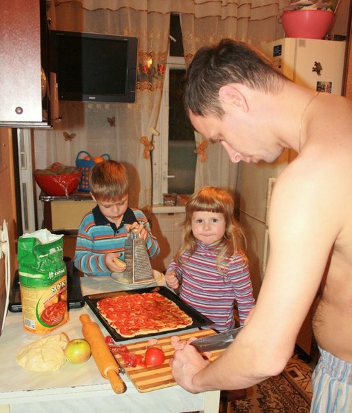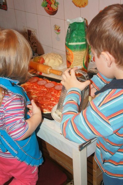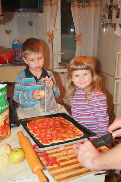 Мои сладкие-пресладкие и любимые пиццеделы)))Да как славно и дружно у них всё получалось,что я не удержалась и потянулась запечатлеть такую милую картину)))А какой аромат стоял по всей квартире в этот осенний тёмный вечерок!!!Девочки-словами не передать))