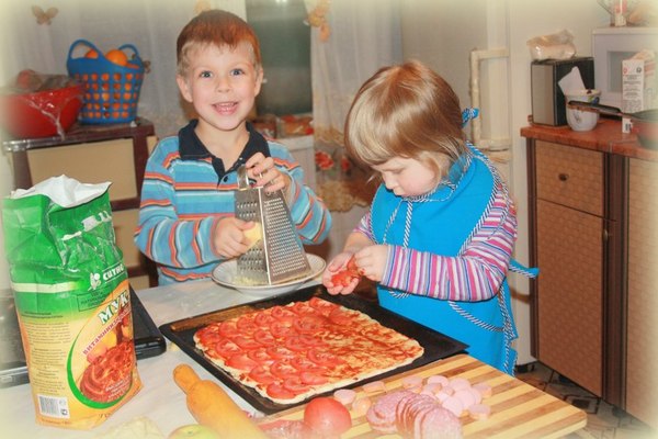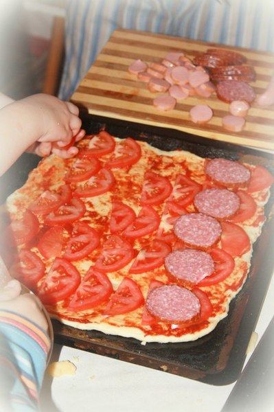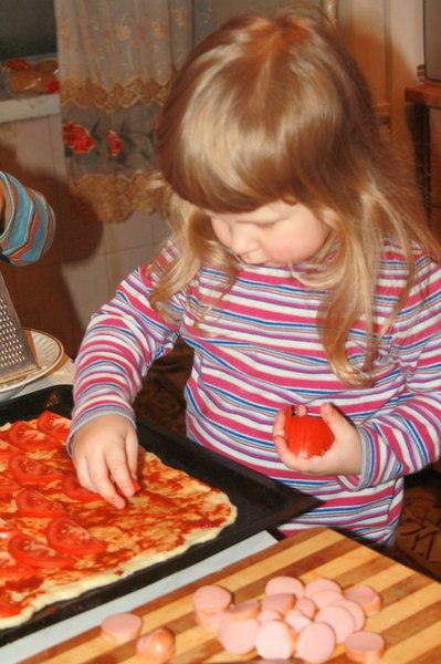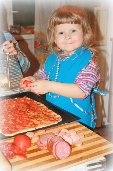Пицца,приготовленная детскими ручками-вдвоёне вкуснее!Даже не знаю что можеть вкуснее на этом свете?))