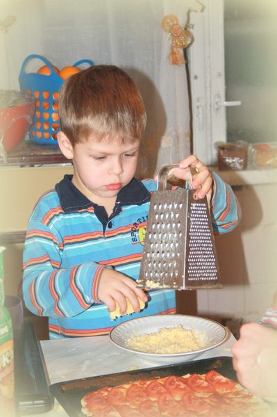 Саша старательно тёр сыр на тёрке))Я только успевала переживать за его пальчики-но обошлось)))