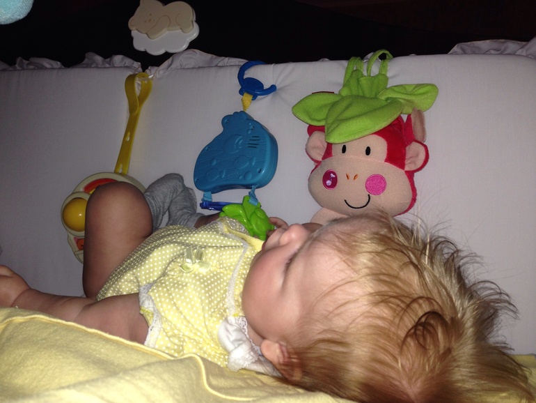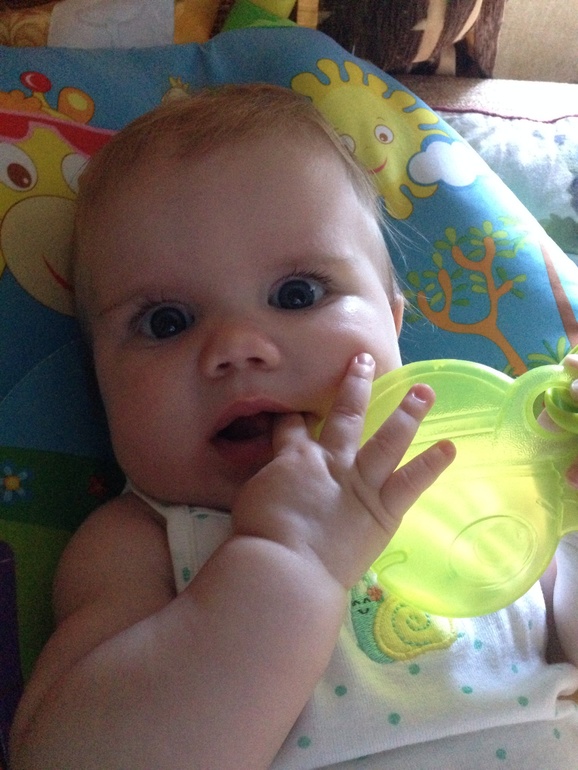 Да, милаха ) все не могу переворачиваться заставить, не нравится ей ... Хотя спит на боку или спине, на животе не любит и не лежит (((