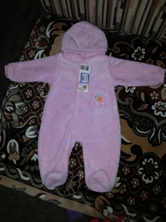 Да если купить на рынке допустим, то конечно можно уложиться. А в магазинах всё немного дороже. А так как у нас нет столько времени, чтоб ходить по рынкам, то решили особо на цену не смотреть и взять всё в одном месте. Шапка польская. Комбез отечественный. А комбез розовый рост 74. Вроде как большеват нам должен быть.... но по ширинке большеват, а в длину лапы коротковаты. Пойду завтра на больший менять.