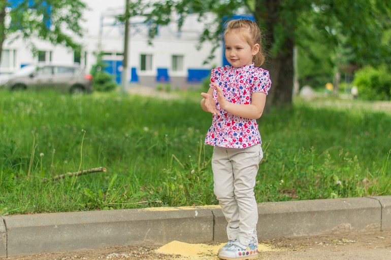 А потом Анютка пыталась их поймать, бегала за ними, охотилась как кошка и кричала как индеец ))) Забавное зрелище я вам скажу! Но не поймала...поэтому присела тихонько на бордюр и стала наблюдать