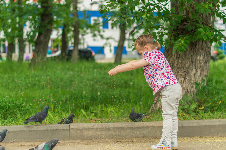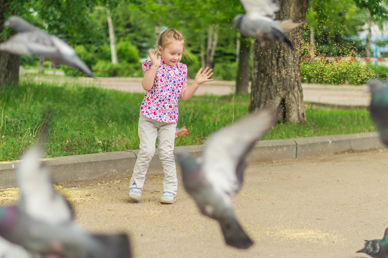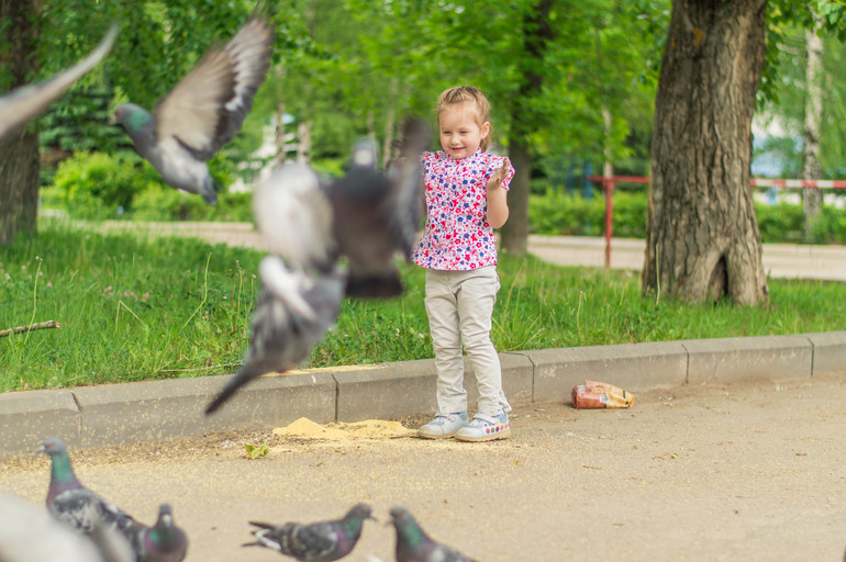 Птицы взлетали вокруг нее, вызывая тем самым у ребенка восторг ))) Почему взрослые не умеют радоваться таким простым вещам?