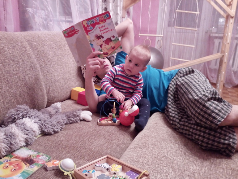 В субботу с утра сын стал звать мужа, чтобы показать ему свои достижения (обычно по утрам он мало на папу реагирует), после завтрака он залез к мужу на колени, стал обнимать его, а потом на мою просьбу "покажи, как ты любишь папу", он проявил свою любовь! (Погладил и почеловал в щечку) Правда после этого я должна была обязательно тоже поцеловать мужа)))