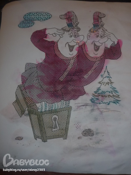 мама помогала, рисовали кистью ( Юра сказал , что должно быть так)