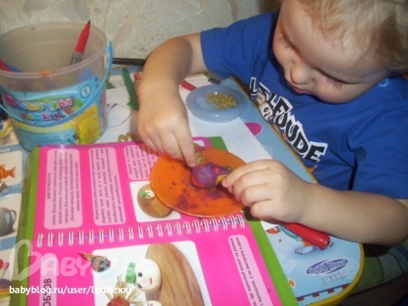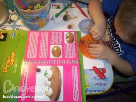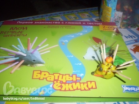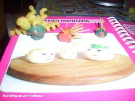 Мы очень любим книжку Братцы - ежики, по ней очень легко лепить даже самым маленьким. Мы начали с 2 лет. (подарили на ДР) Доча самы открывала и лепила что хотела, например вот такая отпадная семья колобков .Что меня радует - делает все сама!