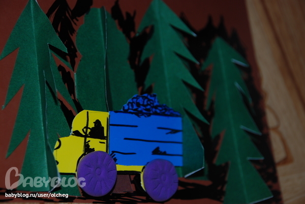 Шла машина тёмным лесом...(лепим колёса, катаем колбаски-мосты)