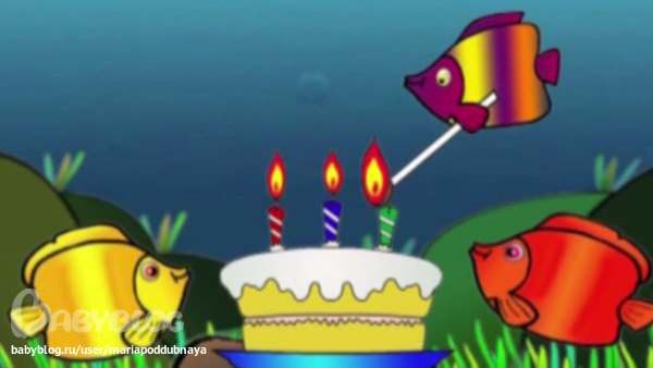 Рыбки зажигают свечки на праздничном торте (учим цифры: один, два, три)