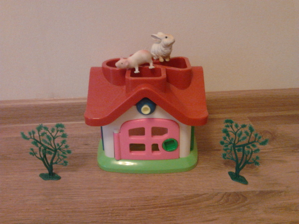 А Медведь все равно полез в Теремок. Сел на крышу и повали домик на землю..