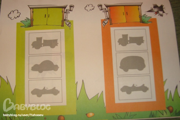 Нам пока рано.Нужно вырезать карточки и собирать разные фигуры,можно по примерам,можно их головы