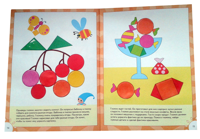 Для начала просто ознакомились с формами. Разложила их на столе и предложила собрать композиции...