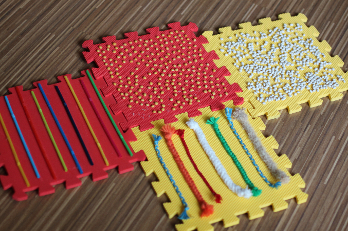 1. сенсорный коврик. мы пока по нему не ходим, ибо не умеем еще, но ручками очень активно трогаем. больше всего нравиться горох отковыривать. конечно, он будет расширяться, это так сказать проба пера.