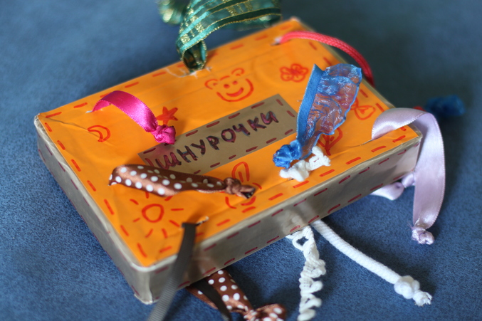 3. Коробочка для перетягивания шнурочков. Не могу вспомнить, у кого углядела, но за идею безумно благодарна! используем по прямому назначению.