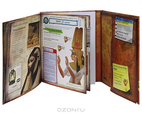 Дополнительных материалы: карты и схемы, "подлинные" документы, маска фараона, дешифратор иероглифов, наклейки и даже настоящее удостоверение тайного агента! И многое другое.