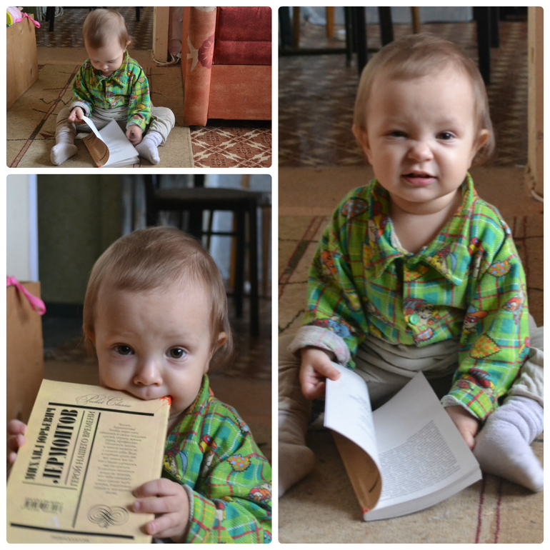 Нам 1.10 встаем, горшок, книга, потом завтрак, книга, играем, гуляем, перед сном книга и так далее. У нас наказание, будешь плохо вести себя не будем читать. Говорим плохо и мало, но какие то стихи уже рассказываем, точнее что то показывает, что то мама говорит, что то дочка говорит. Так стиха 5 знаем и рассказываем. Что читаем, картонные книги не любим и особо не любили, с года все только на тонких листах, из картонных единицы что берет.Любит Пушкина, любим Маршака, человек рассеянный готовы читать безостановочно. Сказки не очень у нас идут, в основном стихи у нее библиотека больше чем взрослая, сложно все перечислить.У нас этажерка в доступном месте на ней книги лежат, на столе лежат, она может подойти и сама выбрать что ей хочется. Заставлять нельзя, реакция противоположная будет. Читать книги вместе стали как только села, брала на руки и переворачивала страницы читала и показывала это лисичка, это мишка. В год показывали по свойму всех животных, где кто нарисован в книги, тыкала пальцем. Теперь задаю наводящие вопросы, что бы она отвечала. Вот так мы полюбили книги.Но мамочки у которых два и больше ребенка, говорят что все дети разные, один книголюб а другого не заставишь, не переживайте, это не главное все разные все индивидуальны. Одному дано книги читать, другому носиться сломя голову. Не надо ломать то что природой заложено, потихоньку все придет)) И еще читала одну интересную статью, собрание в школе. У одной мамы спрашивают как вы заставляете своего читать, наши никто не хочет. А она в ответ да никого я не заставляю он сам берет и читает. Мы все любим читать, когда родители читают, а не сидят за компьютером либо за теликом, вот отличный пример для ребенка. Ребенок это повторюшка, ну это конечно когда повзрослей)))
