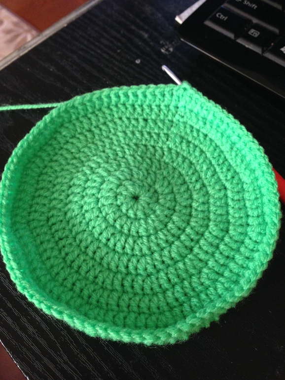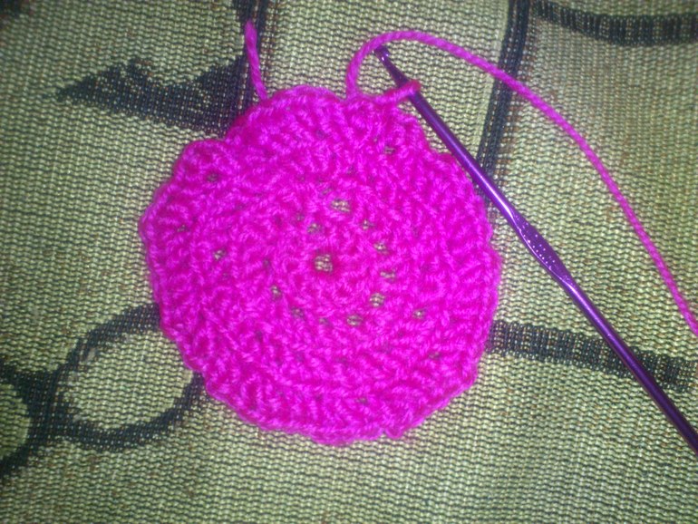 Получилось как то так, 14,5 см диаметрПолучилось полусферой а не кругом, это допускается? Увидела как у других, я вязала все время по кругу(((