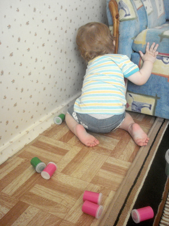 Когда сделала игрушку (в 9-10 месяцев) - играл, пытался протолкнуть помпоны, радовался их появлению. Так что развивашка пригодилась, свою роль выполнила. Но сейчас интереса не вызывает.