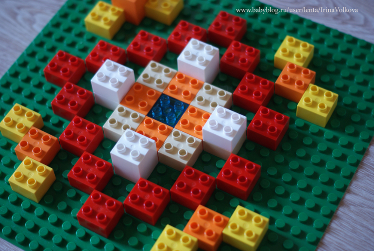 А вообще можно приспособить для выкладывания любой материал. В ход могут пойти и скрепки, и камушки и крупные бусины! И даже из кубиков и конструктора Лего тоже можно сотворить мандалу!