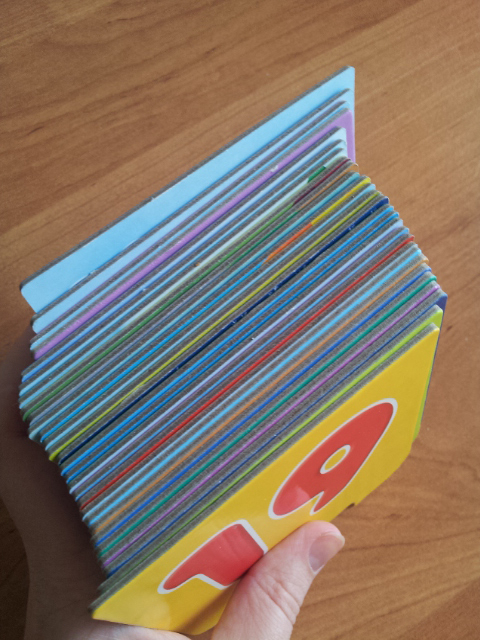 О качестве: размер 12.5 см на 14.5 см - в ширь чуть толще из - за пластиковой основы с кнопкой. В руках 3-х годовалого ребёнка сундучок кажется очень внушительных размеров.Работает от 3-х батареек ААА - сменные(в комплект уже входят).Карточки достаточно жёсткие , гладкие , с приятными для глаз , не кричащими картинками. В сундучке вы найдете 28 карточек с цифрами и числами - да не простых, а говорящих! Чтобы карточка заговорила, ее надо вставить в специальный пластмассовый «кармашек» на сундучке и нажать на яркую кнопку-звёздочку. Карточки можно вставлять обеими сторонами: с одной стороны озвучиваются цифры и числа, с другой - слова-примеры и забавные звуки. После занятия их очень удобно сложить в компактный сундучок.Сын уже сам определил место обитания для своего сундука))))и не дай бог поставит мама его не туда - отругает ребёнок)))Вот так всё серьёзно)))Осталось только с цифрами разобраться))