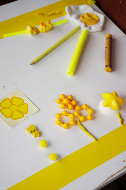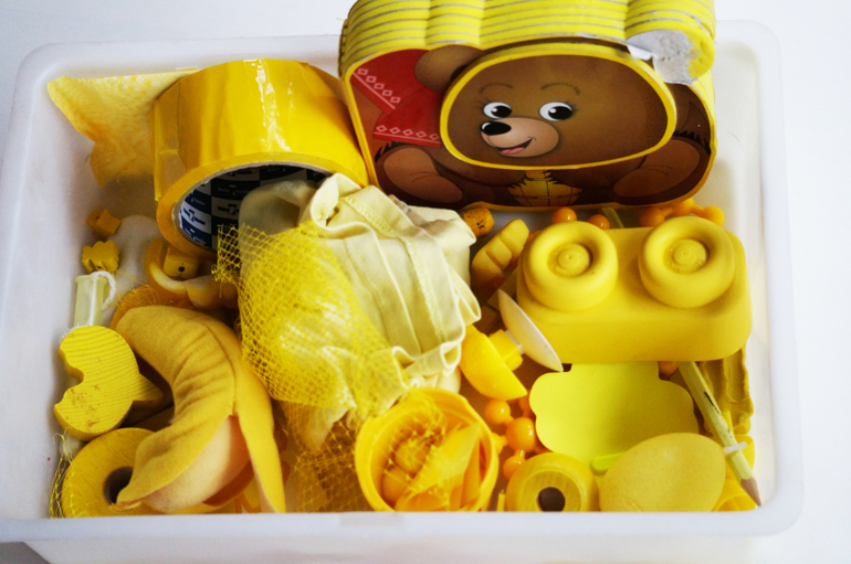 Развитие детей второго года жизниНа днях Маше будет 1,7, но мы до сих пор плохо различаем даже базовые цвета, хотя некоторые в это время уже палитры по пантонам раскладывают. Я внутри долго сопротивлялась тематическим дням по цветам, как-то это казалось слишком навязчивым, а я больше люблю разнообразные, порой интуитивные занятия. Решилась, сегодня хмурым дождливым деньком, мы занялись ЖЕЛТЫМ цветом. Сенсорная коробка с желтыми предметами - любопытно, как привычные для ребенка вещи, принимают новый окрас в такой подаче. Игра рождалась на ходу, креативности добавил желтый скотч, который мы сразу наклеили на стол в виде дороги. Коробка заняла Машу на долго, а потом у нас был желтый ледовый суп для Мишки! К вечеру дочь показывала на желтые занавески, тарелки и другие предметы быта! Однозначно, будем изучать так цвета дальше!